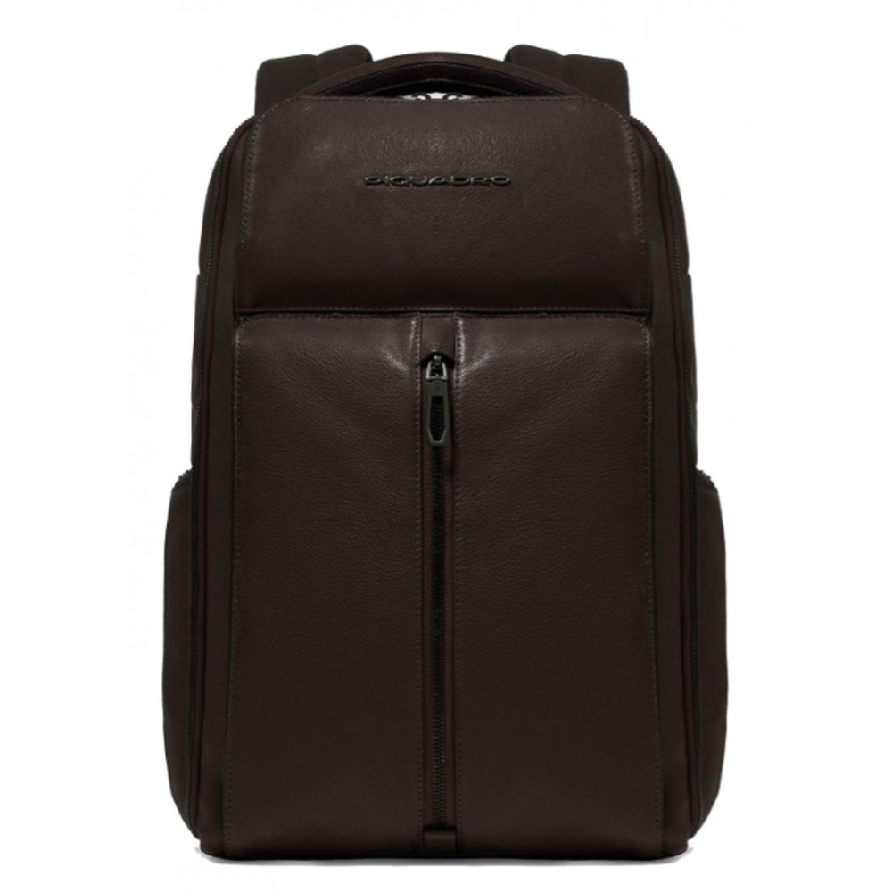 Большой кожаный рюкзак для ноутбука диагональю 15,6 дюйма Piquadro Hedley (W130) Dark Brown. Дорожная модель на два отделения, одно из которых – для одежды.