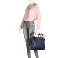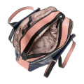 Made in Italy. Гарантія - 2 роки (2 роки). Теляча шкіра. У виробництві використовується лише добірна сировина. Дублення і просочення шкіри проводиться в спеціальній лабораторії компанії. Шкіра стійко протистоїть до виникнення візуальних ушкоджень, потертостей і впливу ультрафіолетових променів. М'який каркас. Сумка не піддається розтягуванню і різного роду деформаціям. Комбінація кольору - синя основа з рожевими елементами. Металева фурнітура кольору блідого золота.